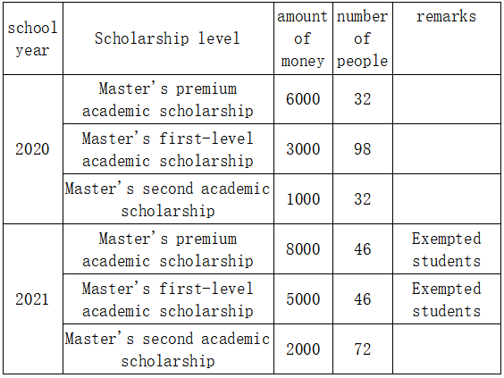 Academic scholarship level and award standard for academic degree graduate students
