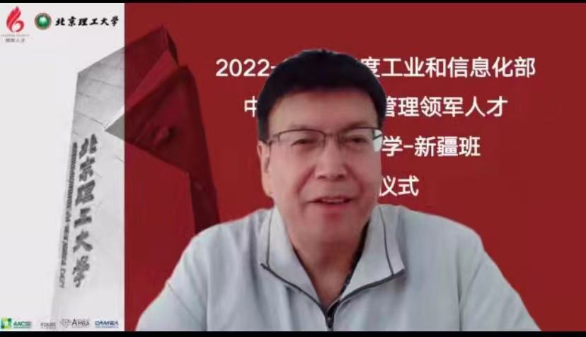 On November 30,2022, the 2022-2023 Ministry of Industry and Information Technology small and medium-sized enterprises leading management talents BIT-Xinjiang class held a simple and grand opening ceremony online. Xinjiang Uygur Autonomous Region talents project director Liu Zebing, Beijing Institute of Technology School of Management and Economics Dean Wang Zhaohua, vice dean Chen Xiang, teacher representative Sun Liyan, Assistant Dean and Director of the Joint Professional Degree Education Center Wu Shuilong, deputy director Li Xiao-hui and more than 60 entrepreneurs students attended the opening ceremony. The ceremony was hosted by Wu Shuilong.