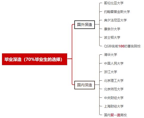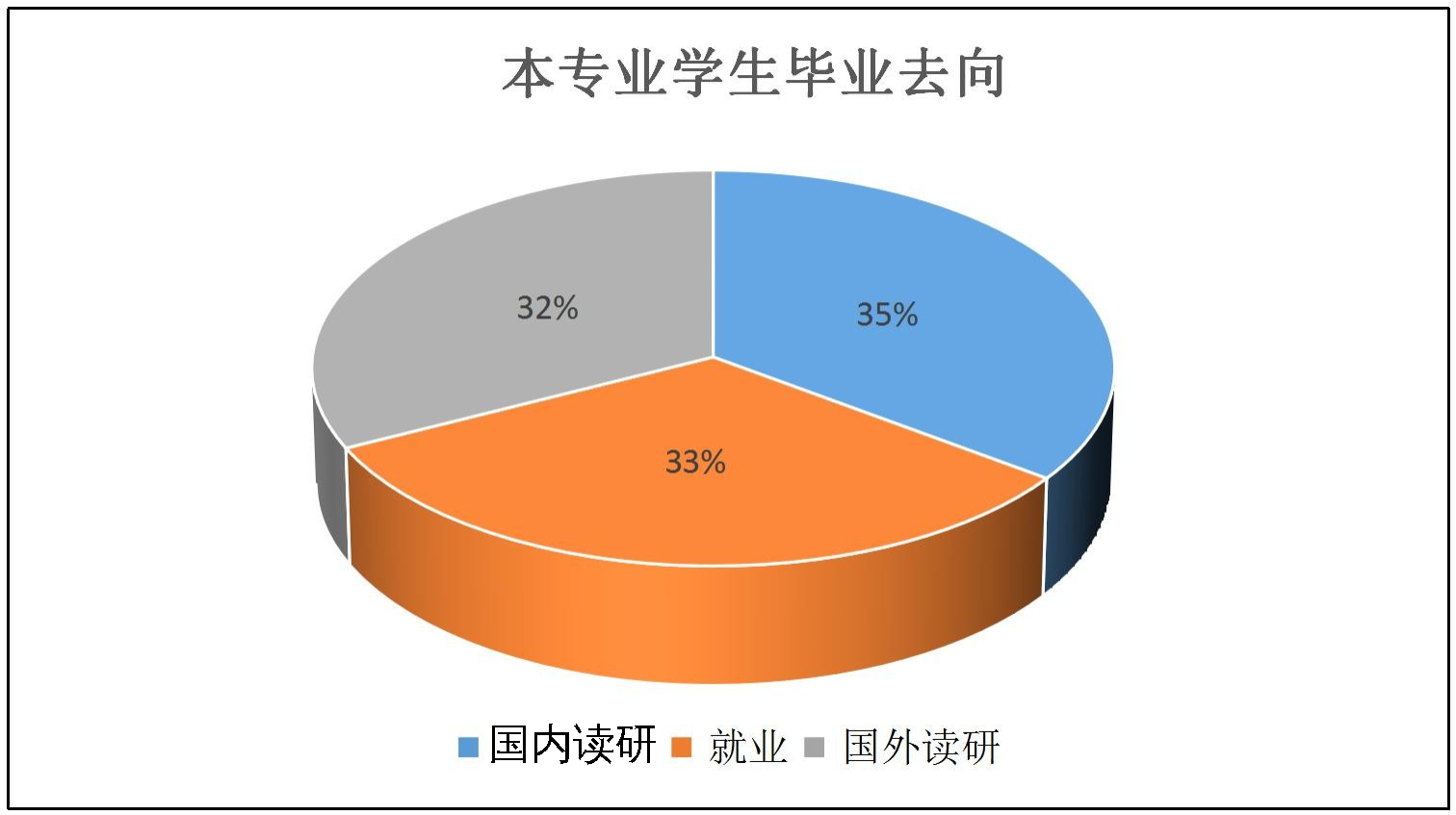 国内外深造。本专业学生毕业后约有 70%选择继续深造,其中大部分学生选择到美国、英国、德国、法国、日本、澳大利亚等国家和地区 QS 排名前 100的著名院校学习。