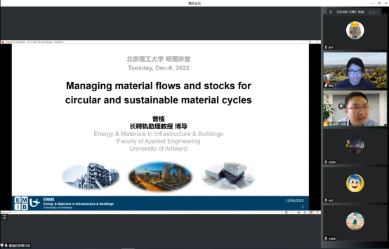 12月6日,【明理讲堂2022年第60期】有幸邀请到比利时安特卫普大学曹植研究员为大家带来题为“Managing material flows and stocks to decarbonize material cycles”的学术报告。报告由北京理工大学管理与经济学院张斌老师主持。本次报告以线上的形式开展,吸引了20多位老师同学参加。