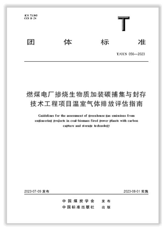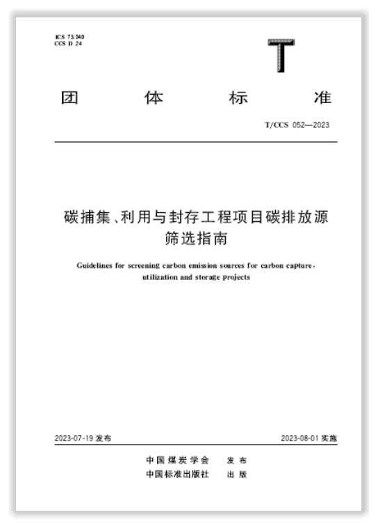 2023年7月,由北京理工大学能源与环境政策研究中心牵头,中国煤炭学会归口管理,联合业界多家单位编制的《碳捕集利用与封存示范项目数据管理规范》(T/CCS 054-2023)、《碳捕集利用与封存全流程工程项目风险评估指南》(T/CCS 053-2023)、《碳捕集利用与封存工程项目碳排放源筛选指南》(T/CCS 052-2023)、《燃煤电厂碳捕集-驱替采油工程项目全流程成本核算指南》(T/CCS 055-2023)、《燃煤电厂掺烧生物质加装碳捕集与封存技术工程项目温室气体排放评估指南》(T/CCS 056-2023)等5份CCUS系列团体标准正式发布,填补了相关领域的标准空白。