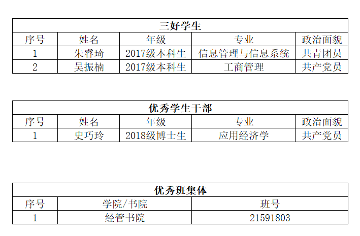 根据学校下发关于2019-2020学年北京市三好学生、优秀学生干部、先进班集体评选通知及条件,学院组织开展评选工作,经过评审委员会决议,最终评选结果如下: